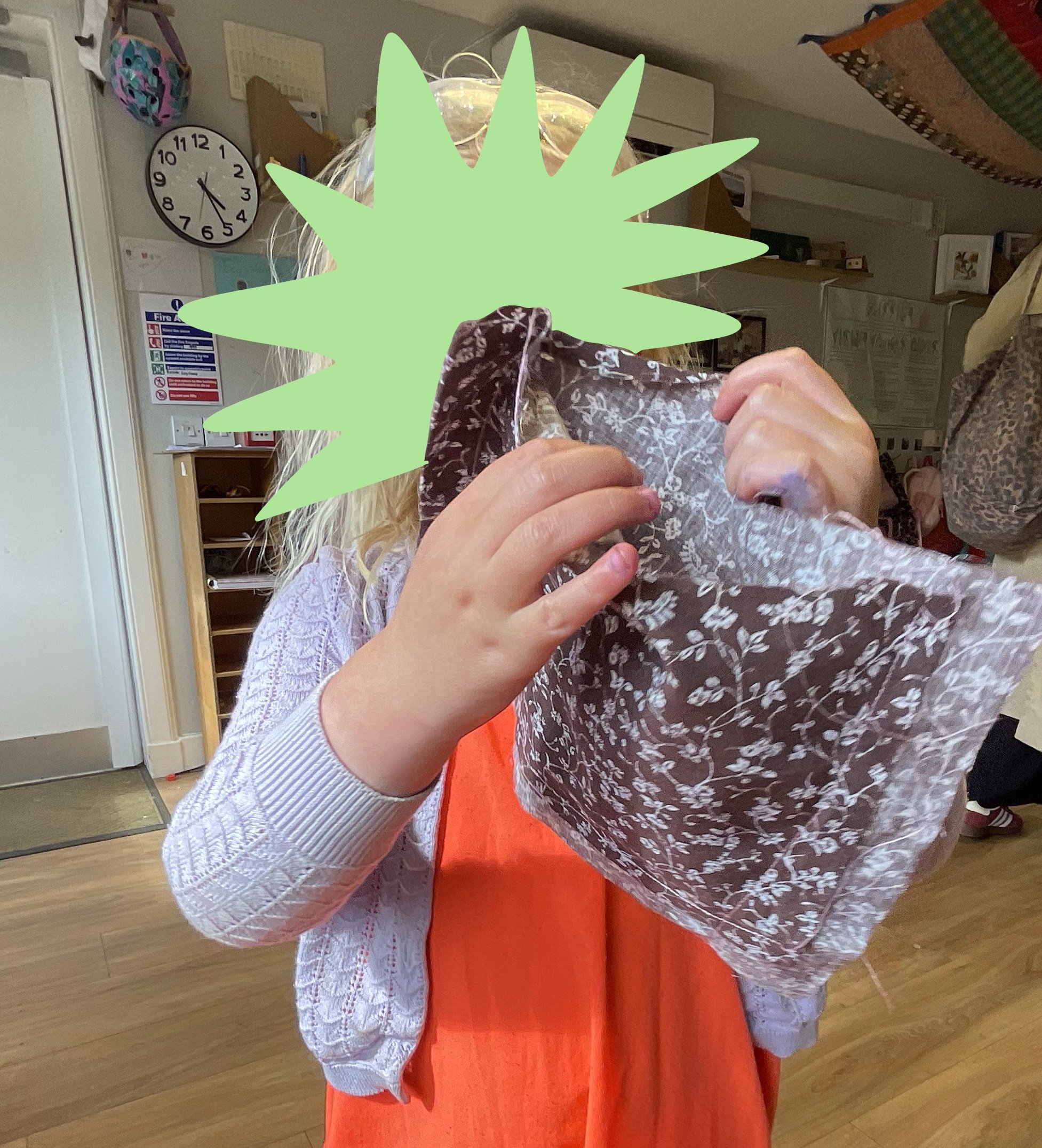 At the nursery I work at, I added sewing into our curriculum, and now our children can create whatever they want to using our machine. On this day, this child saw some scrap fabric from the cushion cover they created and they wanted to create a ‘book pocket’ to keep their book safe.