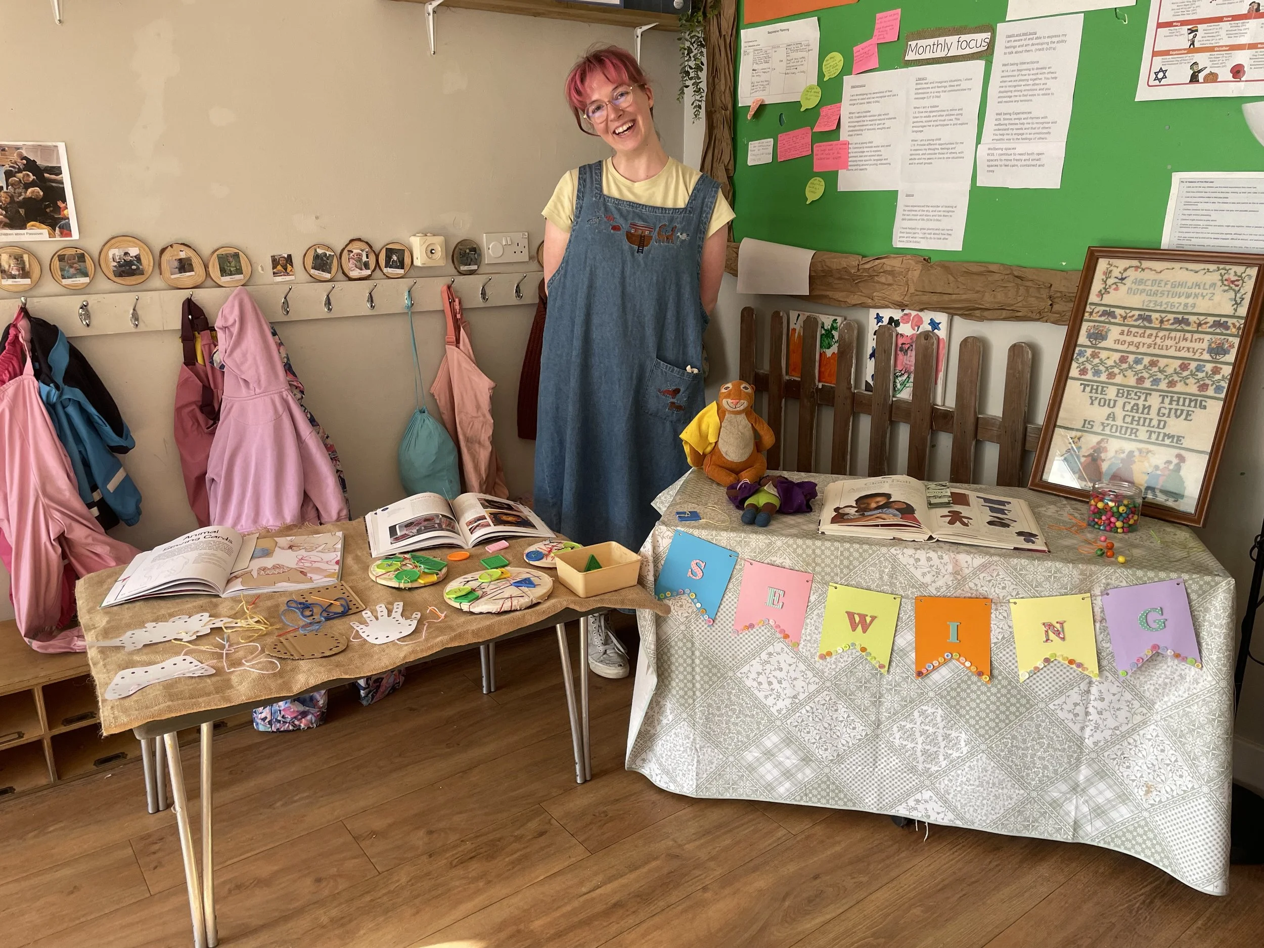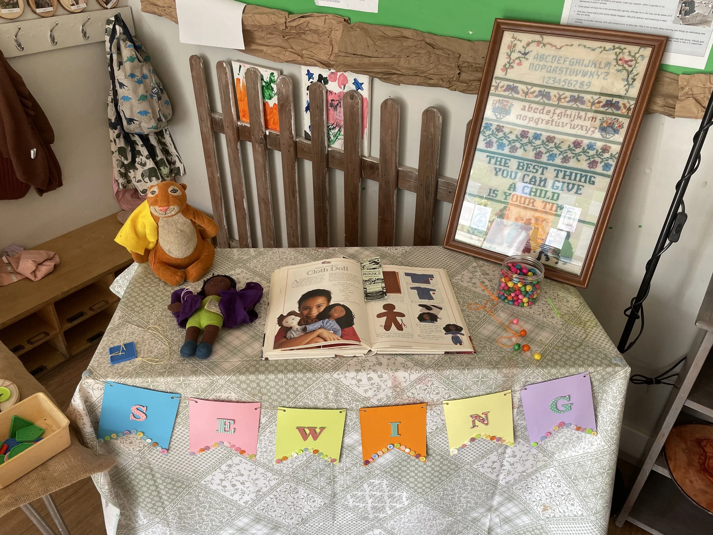 When I started working at a nursery here in Edinburgh, I brought my knowledge of sewing into the curriculum. Sewing with children is a wonderful way for them to learn how to self-regulate, experience community, express their creativity, and practice using their fine motor skills/pincer grip.